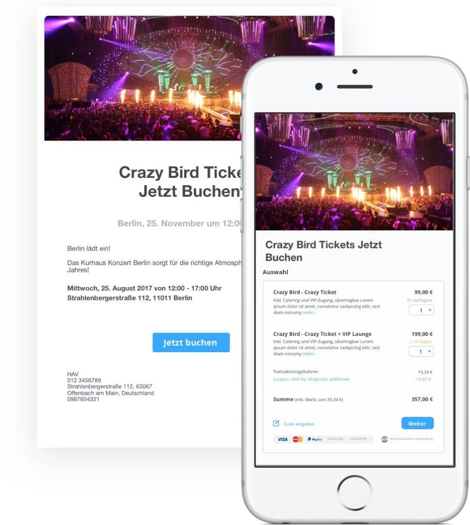 Wie halten Sie den Kommunikationskanal offen mit dem Ziel, weitere Teilnehmer zu gewinnen? Ganz einfach, eine positive Antwort „Ich nehme teil“ führt zur Anmeldung und im besten Fall zum Kauf eines Online Tickets.