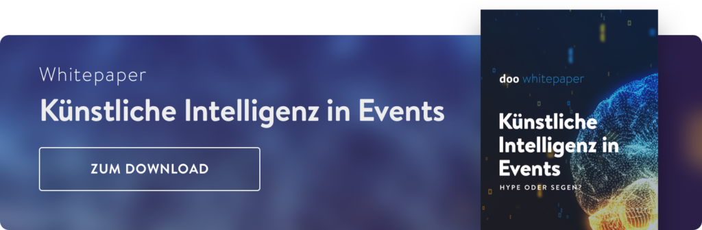 Sie wollen mehr über die Einsatzmöglichkeiten von künstlicher Intelligenz auf Events erfahren? In unserem Whitepaper finden Sie die Antworten auf Ihre Fragen.
